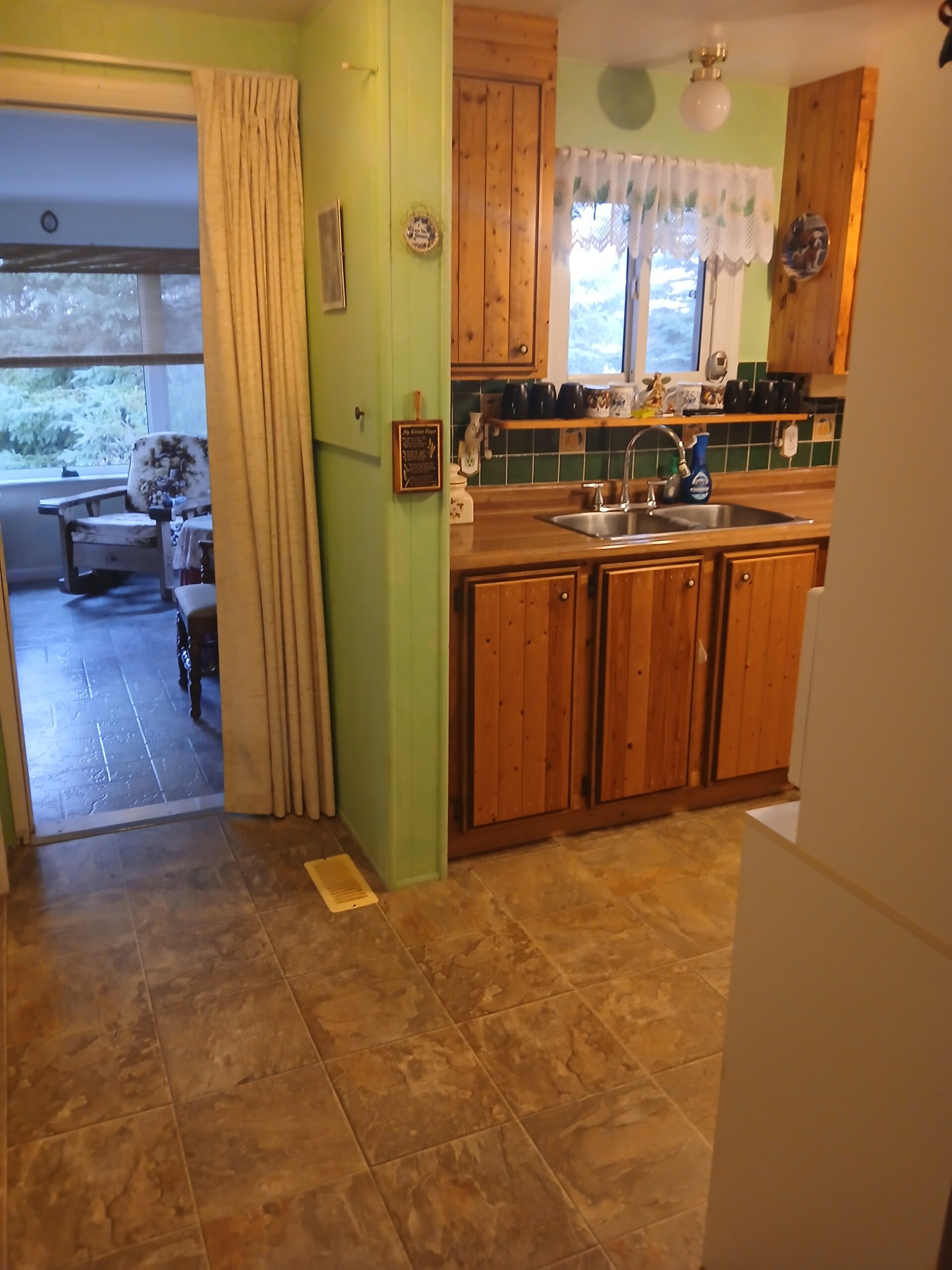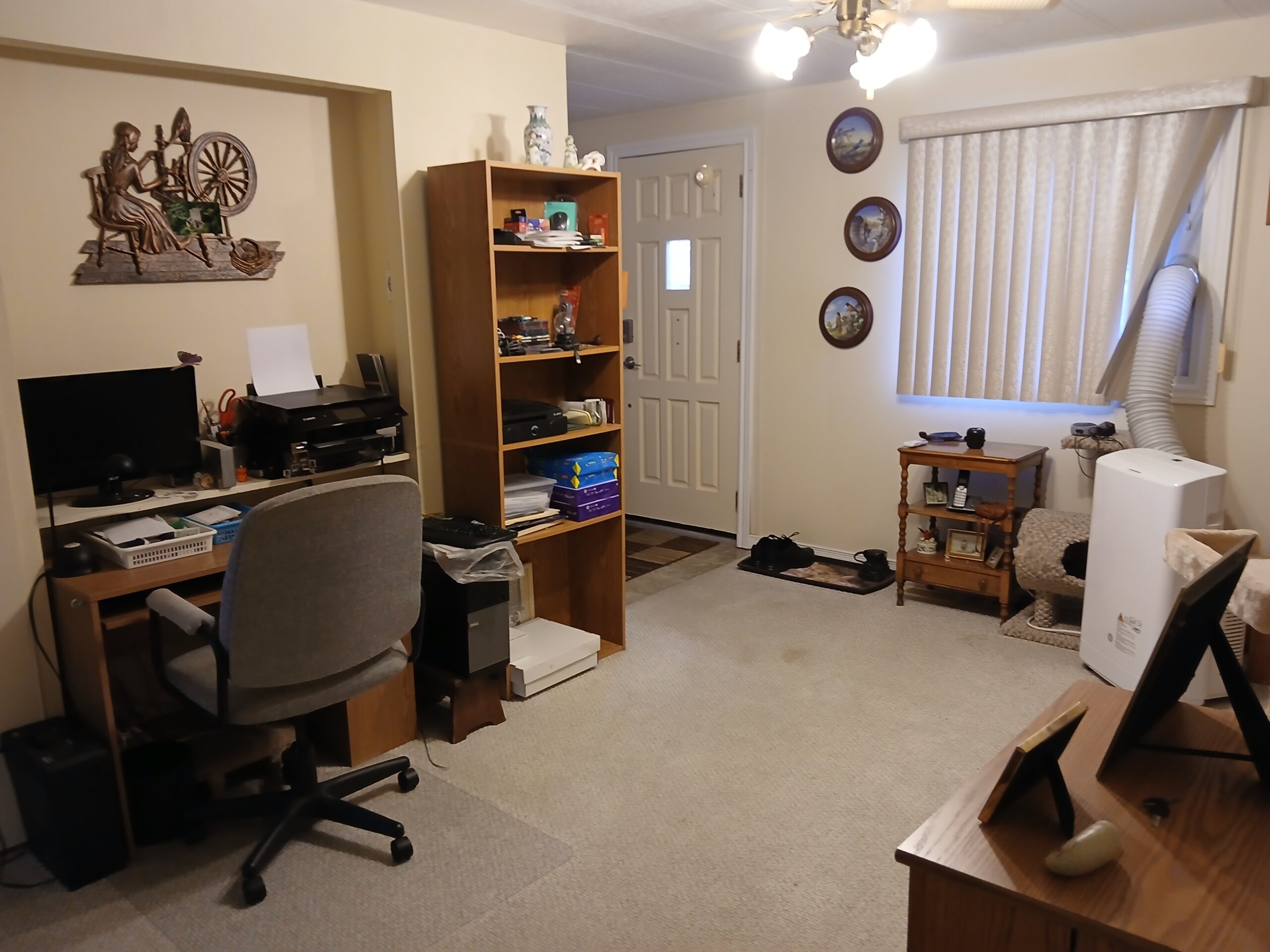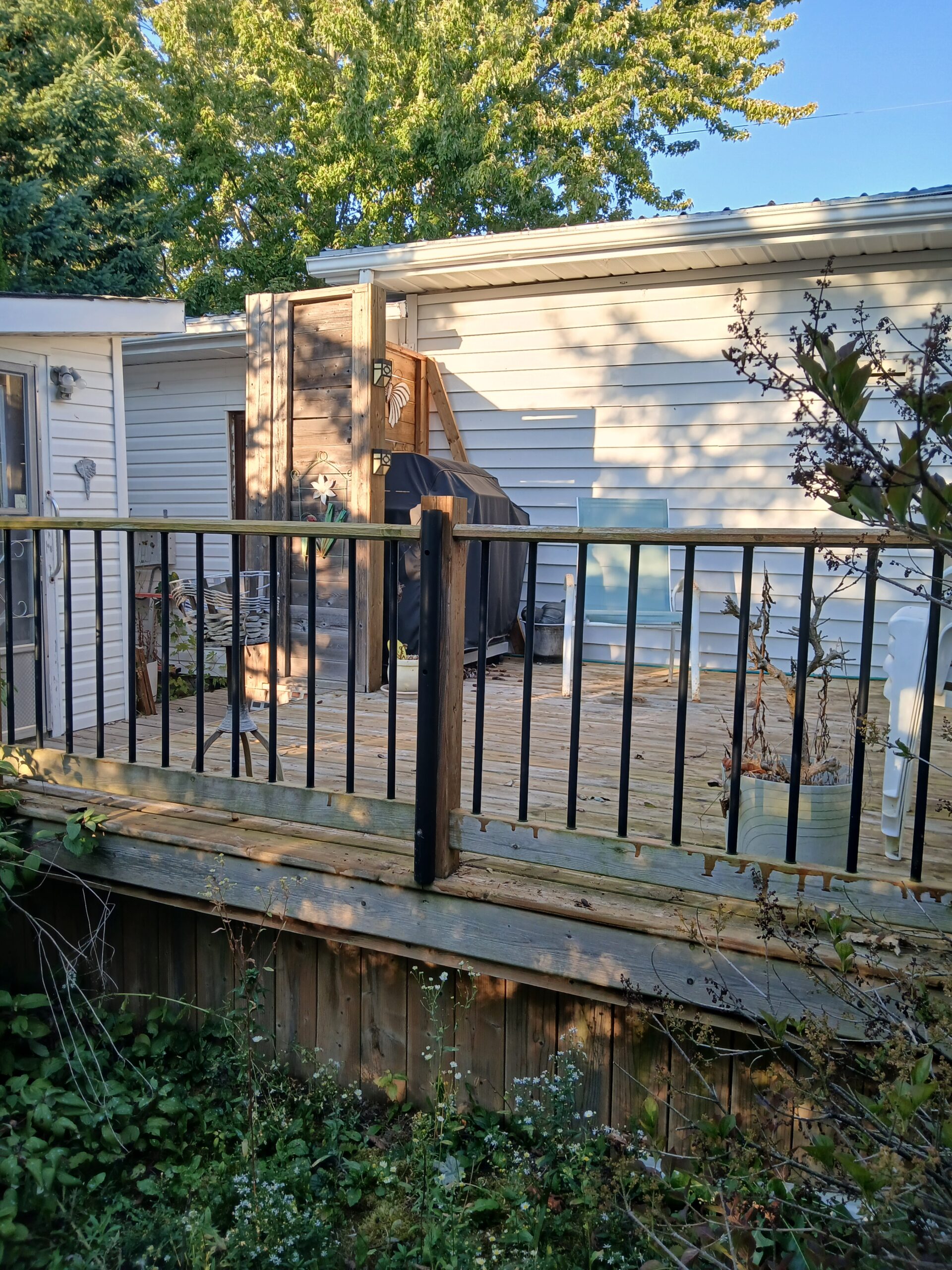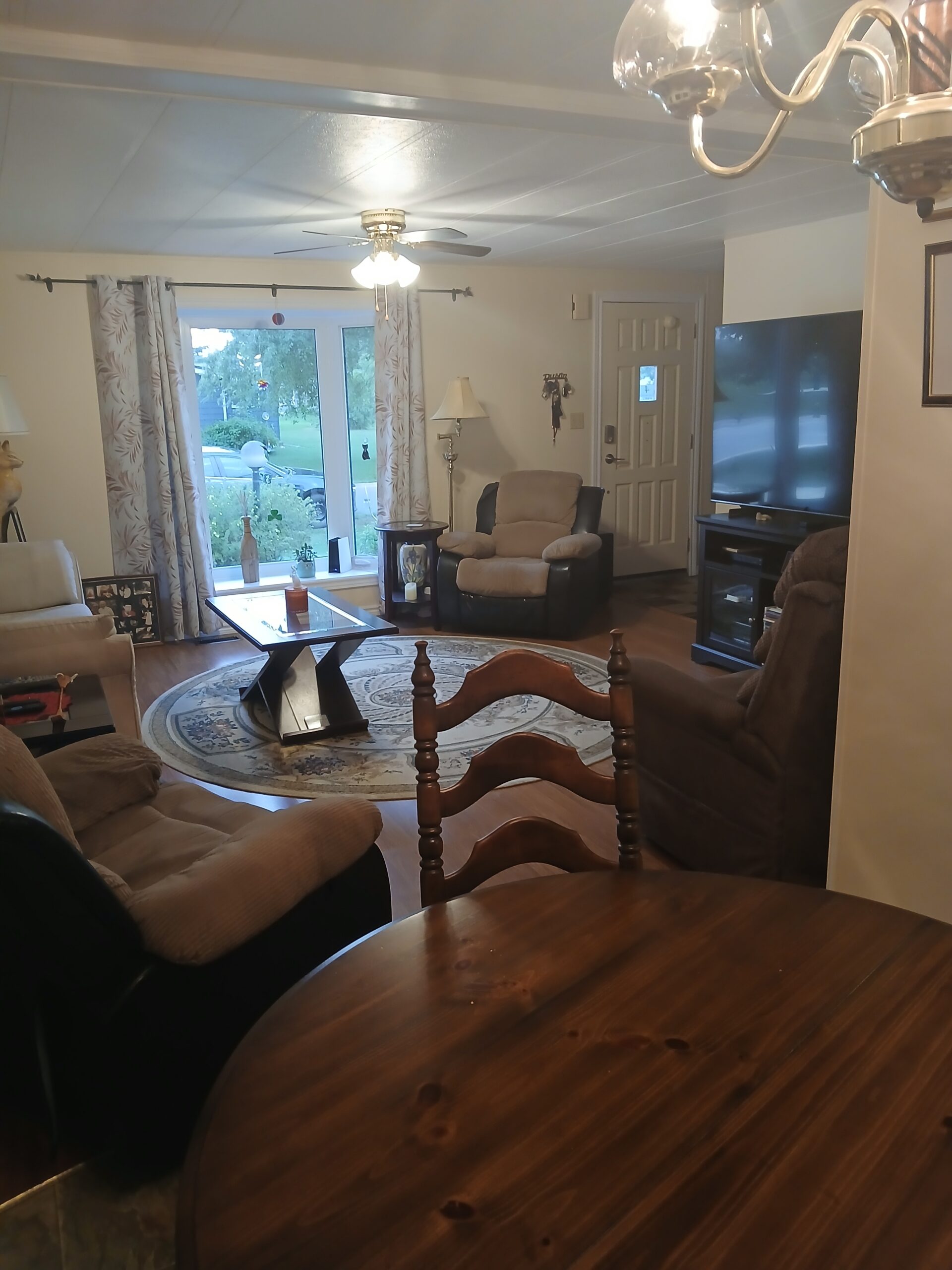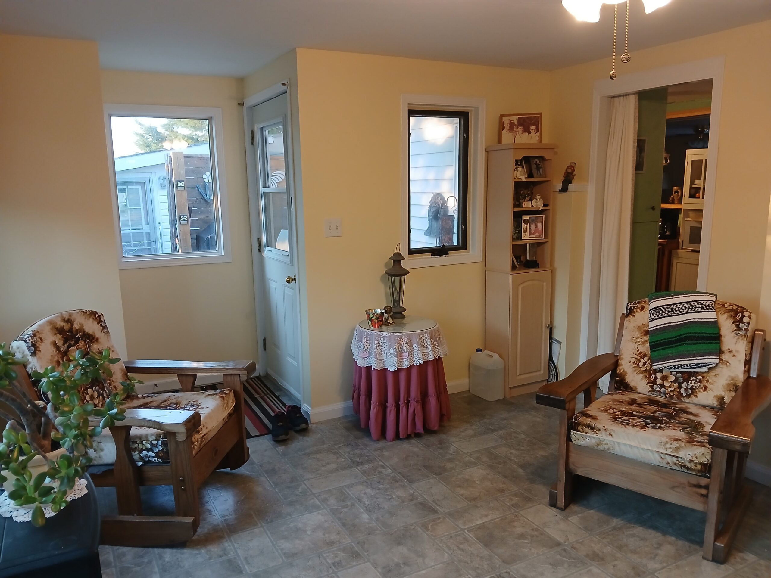 A lovely modular home in a year-round land-lease community, this 2-bedroom home is bright and spacious both inside and out. Have your morning coffee on the east-facing front patio and enjoy the sunset from the west-facing 4-season sunroom. The sunroom exits to the back deck and yard, which is extremely private and backs onto a field. There is a high, dry, and bright storage or work shed with windows, power, and a work bench, and a garden shed with power, shelving, and a work bench. There is a 1.5-car enclosed carport with access to the back deck. Inside you will find spacious rooms with good storage. There are two good-sized bedrooms, with the master having a large closet and the second having a built-in Murphy bed and storage. The front entrance divides the den and living room, with the dining area and galley kitchen towards the back of the house, and the sunroom which is off of the kitchen and the laundry nook.